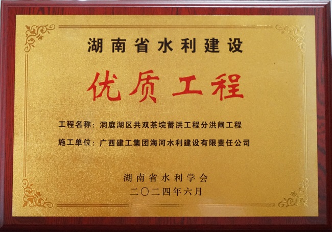 近日,湖南省水利學會公布2023年度湖南省水利建設優質工程獲獎名單,由廣西建工集團海河水利建設有限責任公司直屬分公司承建的洞庭湖區共雙茶垸蓄洪工程分洪閘工程獲獎。